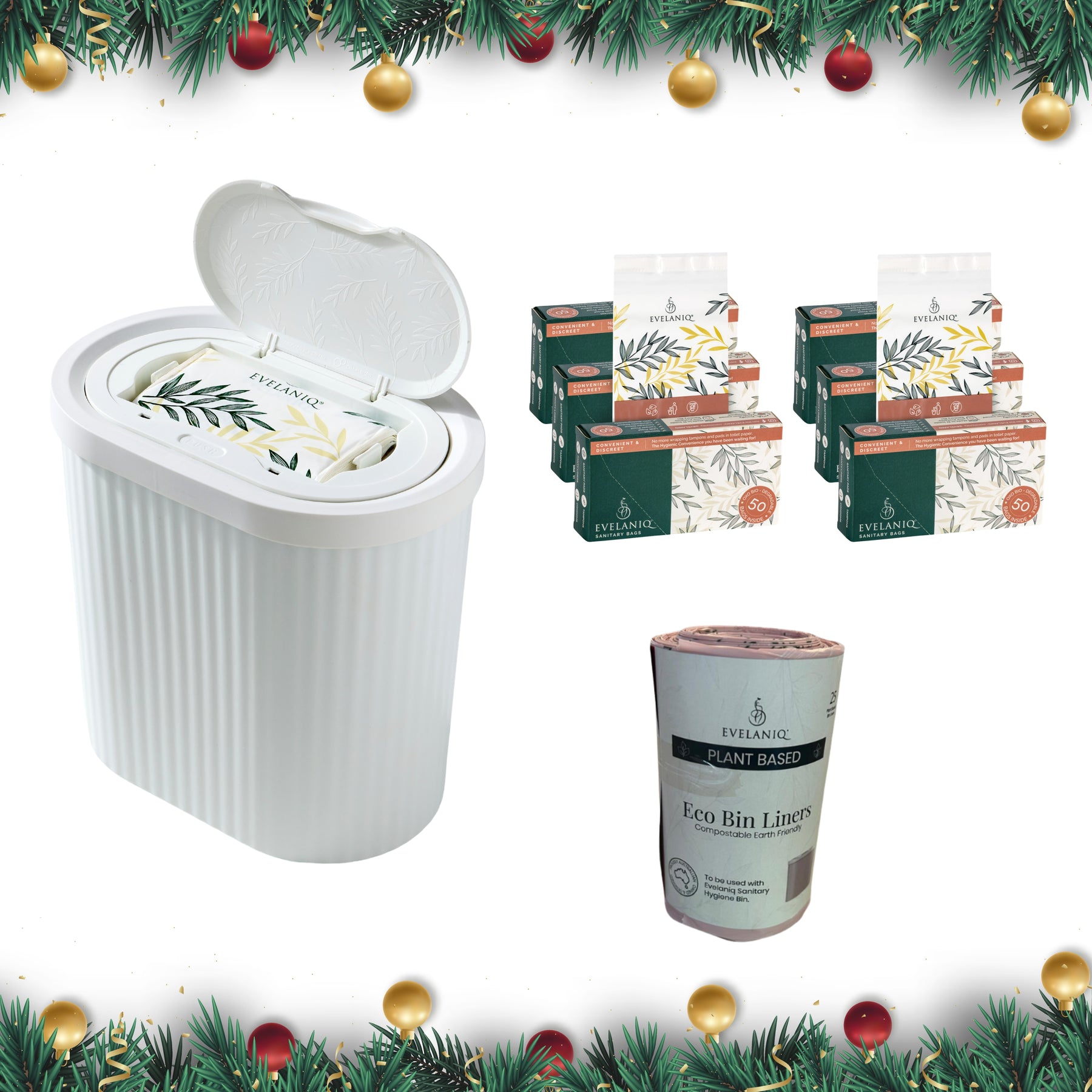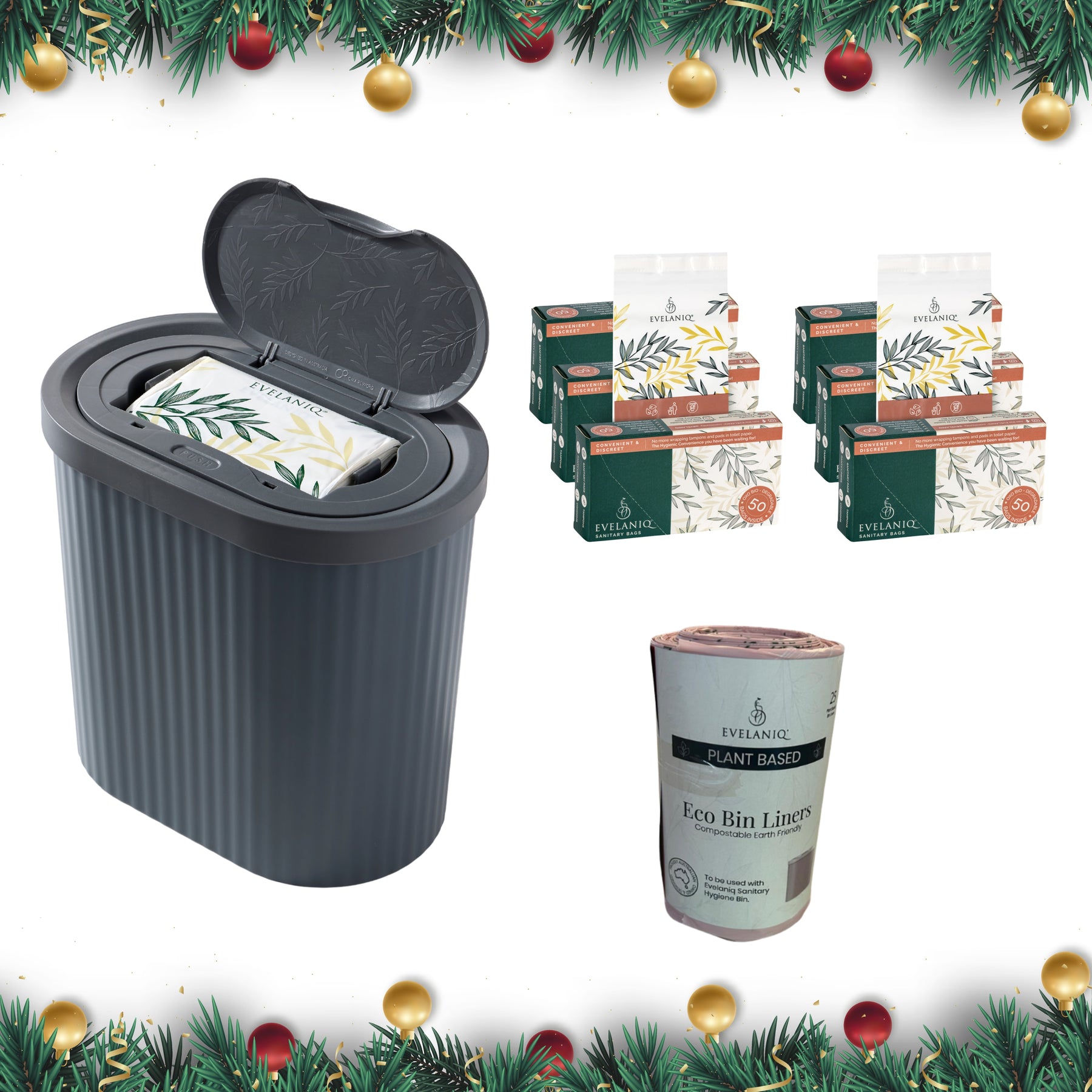 Evelaniq isn’t just a bin — it’s a complete sanitary disposal system. Our patented design combines odor-locking technology, a built-in biodegradable bag dispenser, and discreet waste storage. It keeps your bathroom or workplace fresh, hygienic, and completely odor-free — no daily emptying, no embarrassment, no smell.