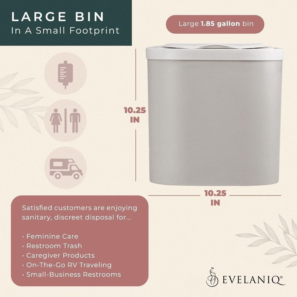 Yes — Evelaniq is built for both. The 7-litre capacity is perfect for sanitary pads, tampons, liners, and incontinence products. It’s an ideal hygienic disposal solution for homes, offices, aged care, and shared spaces.